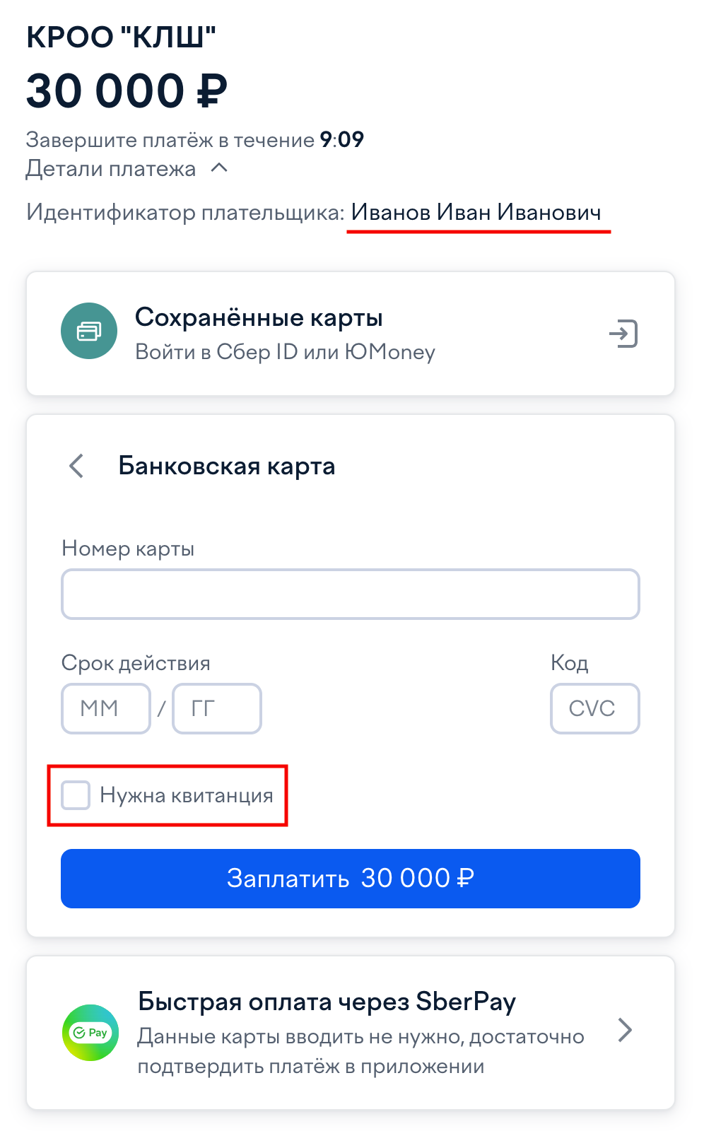 На странице совершения платежа проверьте пункт «Идентификатор плательщика» (нужно указать ФИО школьника) и выберите опцию «Нужна квитанция». Укажите адрес электронной почты для получения квитанции. Она пригодится вам на регистрации в КЛШ-2025.